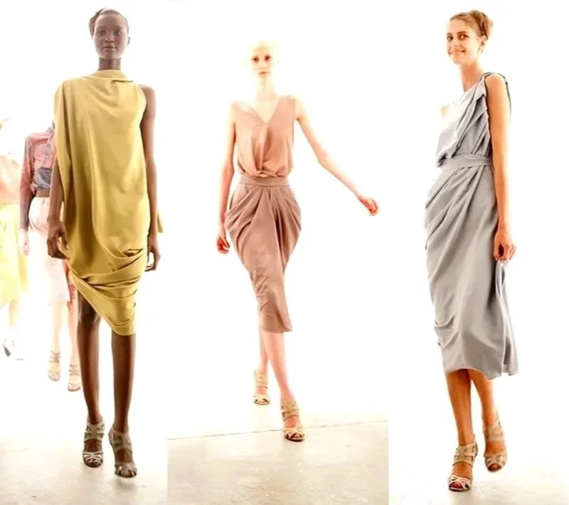 The Costello Tagliapietra collection, beautiful both inside and out is masterfully finished and expertly tailored with gussets, bound edges traced with vintage lace trims and French seams. Empowering and Romantic at the same time through its play with the tension between fabric, drape and silhouette. Approaching fabrics from their most core values, then rethinking and repurposing their uses. Jerseys are treated as wovens, wovens draped like jerseys giving each fabric new life and surprise to the wearer.